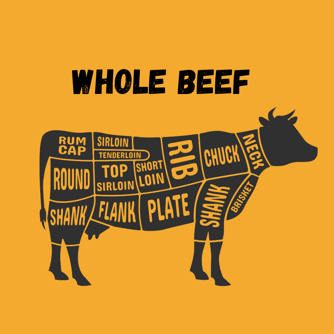 The total cost of the whole is $6000. We require half down to pre-order your beef. The rest will be due upon delivery.
